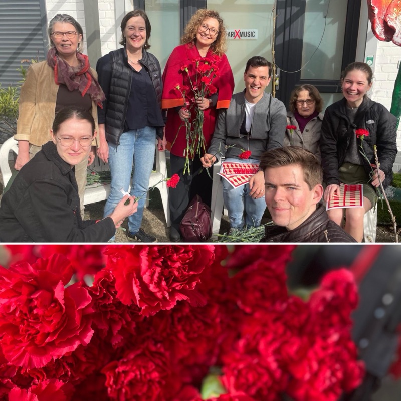 Anlässlich des internationalen Frauentages verteilen wir in Flingern rote Nelken und Schokoherzen.
